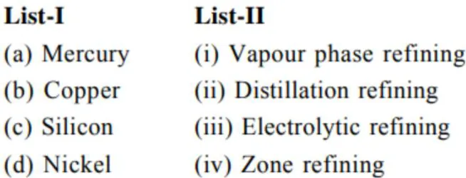(d) Nickel $\rightarrow$ Vapour phase refining