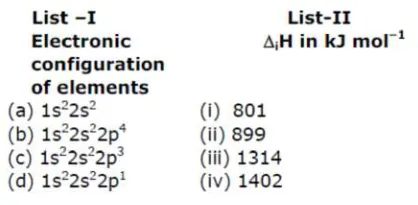 (a) $-$ (iv), (b) $-$ (i), (c) $-$ (ii), (d) $-$ (iii)