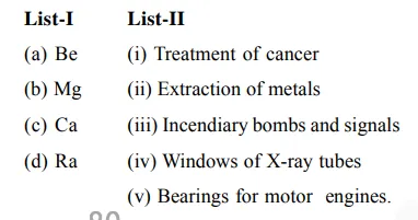 (a) $\mathrm{Be} \rightarrow$ it is used in the Windows of X-ray tubes