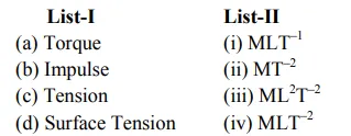 Tension force $\Rightarrow \mathrm{MLT}^{-2}$ (IV)