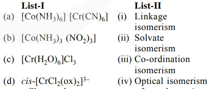 Question: Match List-I with List-II :