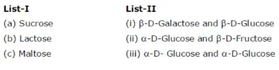 Lactose $\rightarrow \beta-\mathrm{D}$ - Galactose and $\beta-\mathrm{D}$ - Glucose