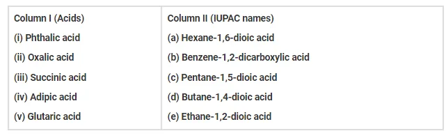 Match the acids given in Column I with their correct IUPAC names given in