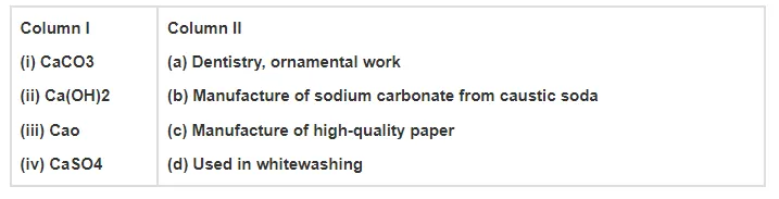 Match the compounds given in Column I with their uses mentioned in Column II.