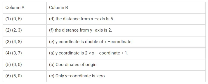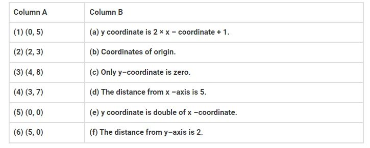 Match the coordinates given in Column A with the items mentioned in Column B.