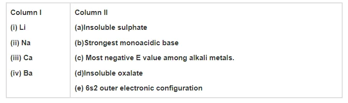 Match the elements given in Column I with the properties mentioned in Column II.