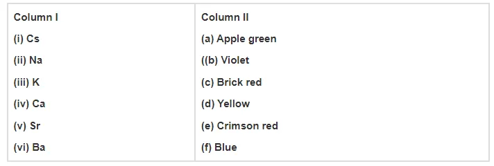 Match the elements given in Column I with the colour they impart to the