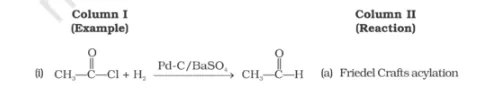 Match the example given in Column I with the name of the reaction in Column II