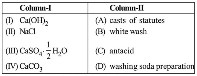 Match the following compounds (Column-I) with their uses (Column-II) :