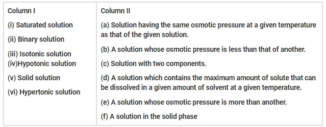 Match the items given in Column I and Column II.