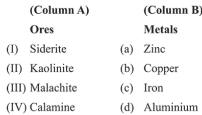 Question: Match the ores (column A) with the metals (column B) :