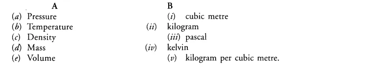 Match the physical quantities given in column A to their SI units given in Column B.