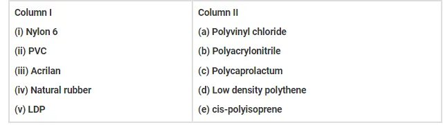Match the polymers given in Column I with their chemical names given in