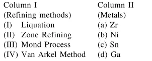 Question: Match the refining methods (Column I) with metals (Column II).