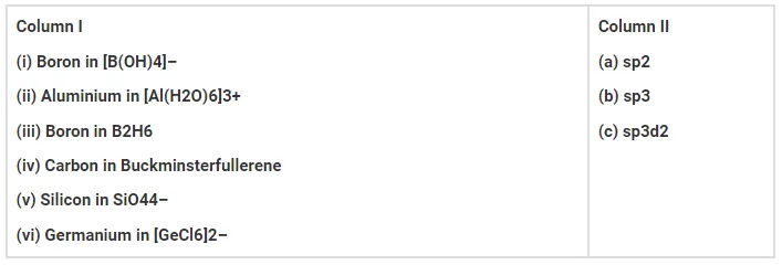 Match the species given in Column I with the hybridisation given in Column II.