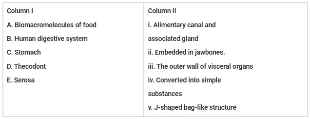 Match the two columns and select the correct among options given