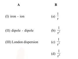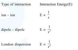 Question: Match the type of interaction in Column A with the distance dependence of their interaction energy in Column B :