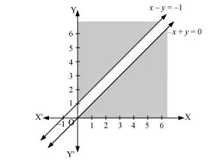 The region determined by the constraints, $x-y \leq-1,-x+y \leq 0, x, y \geq 0$, is as follows.
