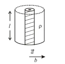 Model a torch battery of length $l$ to be made up of a thin cylindrical bar of radius ' $a$ ' and a concentric thin cylindrical shell of radius ' $b$ ' filled in between with an electrolyte of resistivity $\rho$ (see figure). If the battery is connected to a resistance of value $R$, the maximum Joule heating in $R$ will take place for:
