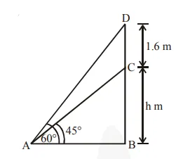 $\Rightarrow \mathrm{h}+1.6=\sqrt{\mathbf{3}} \mathrm{h}$