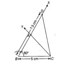 Given, in $\triangle A B C, B C=5 \mathrm{~cm}, \angle B=60^{\circ}$ and $A C+A B=7.5 \mathrm{~cm}$. To construct the triangle ABC use the following steps.