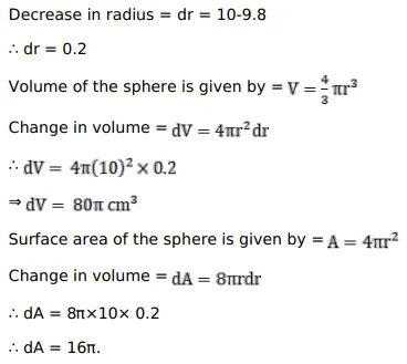The radius of a sphere shrinks from $10 \mathrm{~cm}$ to $9.8 \mathrm{~cm}$. Find approximately the decrease in