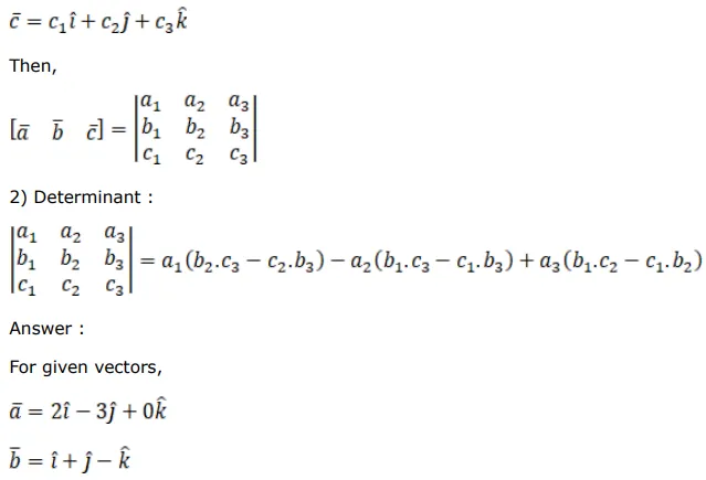 iii. $\overrightarrow{\mathrm{a}}=2 \hat{\mathrm{i}}-3 \hat{\mathrm{j}}, \overrightarrow{\mathrm{b}}=\hat{\mathrm{i}}+\hat{\mathrm{j}}-\hat{\mathrm{k}}$ and $\overrightarrow{\mathrm{c}}=3 \hat{\mathrm{i}}-\hat{\mathrm{k}}$