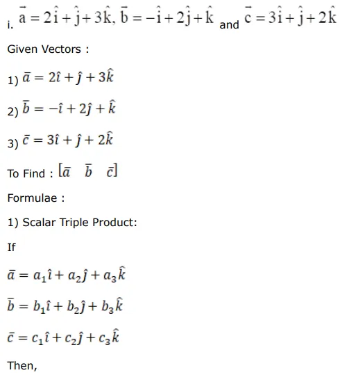 i. $\vec{a}=2 \hat{i}+\hat{j}+3 \hat{k}, \vec{b}=-\hat{i}+2 \hat{j}+\hat{k}$ and $\vec{c}=3 \hat{i}+\hat{j}+2 \hat{k}$.