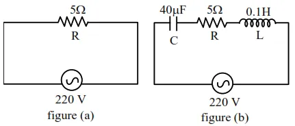 Two circuits are shown in the figure (a) \& (b). At a frequency of $\mathrm{rad} / \mathrm{s}$ the average power dissipated in one cycle will be same in both the circuits.
