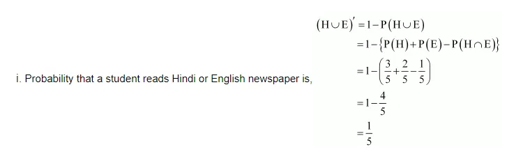 (ii) Probability that a randomly chosen student reads English newspaper, if she reads Hindi news paper, is given by P (E|H