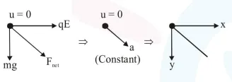 Since initial velocity is zero and acceleration of particle will be constant, so particle will travel on a straight line path.