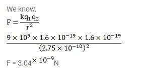 $\mathrm{NaCl}$ molecule is bound due to the electric force between the sodium and the chlorine ions when one electron of sodium is transferred to chlorine. Taking the separation between the ions to be $2.75^{\times 10^{-8}} \mathrm{~cm}$, find the force of attraction between them. State the assumptions (if any) that you have made.