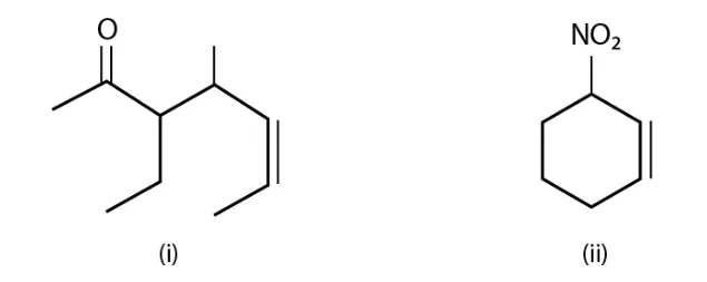 (ii) The name of the compound is; 1-nitro-cyclohexane-2-ene.