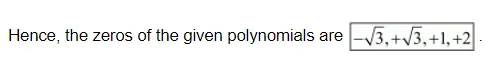 Obtain all zeros of the polynomial $1(x)=x^{4}-3 x^{3}-x^{2}+9 x-6$, if two of its zeros are $-\sqrt{3}$ and $\sqrt{3}$