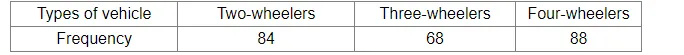 On a particular day, in a city, 240 vehicles of various types going past a crossing during a time interval were observed, as shown:
