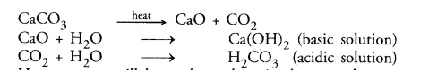 Calcium carbonate $\stackrel{\text { heat }}{\longrightarrow}$ Calcium oxide + Carbon dioxide