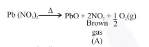 On heating, lead(II) nitrate gives a brown gas (A). The gas (A) on cooling changes to a colourless solid/liquid (B). (B) on heating with $\mathrm{NO}$