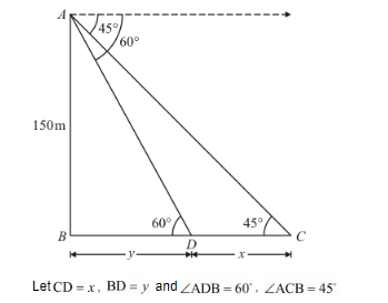 $\tan 45^{\prime}=\frac{150}{x+y}$