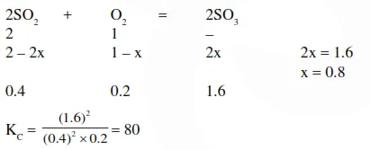 One mole of $\mathrm{O}_{2}(\mathrm{~g})$ and two moles of $\mathrm{SO}_{2}(\mathrm{~g})$ were heated in a closed vessel of one litre capacity at $1098 \mathrm{~K}$. At equilibrium $1.6$ moles of $\mathrm{SO}_{3}(\mathrm{~g})$ were found. The equilibrium constant $\mathrm{K}_{\mathrm{C}}$ of the reaction would be :-
