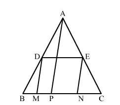 P is any point on the side BC of a ∆ABC. P is joined to A. If D and E are the midpoints of the sides AB and AC respectively and M and N are the midpoints of BP and CP respectively then quadrilateral DENM is