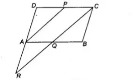P is the mid-point of the side CD of a parallelogram ABCD. A line through C parallel to PA intersects AB at Q and DA produced at R. Prove that DA = AR and CQ = QR.