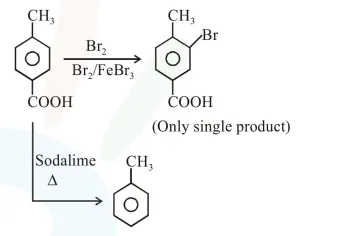 [P] on treatment with $\mathrm{Br}_{2} / \mathrm{FeBr}_{3}$ in $\mathrm{CCl}_{4}$ produced a single isomer $\mathrm{C}_{8} \mathrm{H}_{7} \mathrm{O}_{2} \mathrm{Br}$ while heating [P] with sodalime gave toluene.