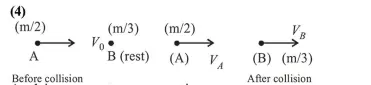 $\frac{m}{2} \times V_{0}+\frac{m}{3} \times(0)=\frac{m}{2} V_{A}+\frac{m}{3} V_{B}$