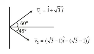 $\Rightarrow \vec{v}_{2}=(\sqrt{3}-1) \hat{i}-(\sqrt{3}-1) \hat{j} \Rightarrow \vec{v}_{1}=\hat{i}+\sqrt{3} \hat{j}$