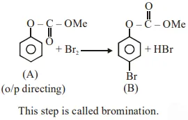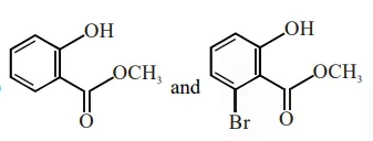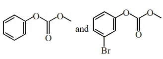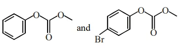 Phenol reacts with methyl chloroformate in the presence of $\mathrm{NaOH}$ to form product $\mathrm{A}$. A reacts with $\mathrm{Br}_{2}$ to form product B. A and $\mathrm{B}$ are respectively :