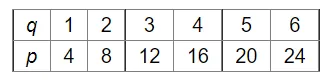 Using the graph, find the value of (i) p, when q = 6 and (ii) q, when p = 20.