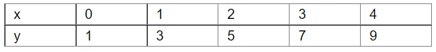 We have the following table for y = 2x+1