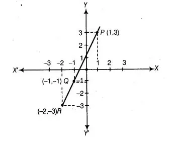 (i) Plotting the points P (1, 3), Q (-1, -1) and R (-2, – 3) on the graph paper and join these points, we get a straight line. Hence, these points are collinear.