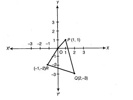 (ii) Plotting the points P (1,1), 0 (2, – 3) and R (-1, -2) on the graph paper and join these three points, we get three lines i.e., the given points do not lie on the same line. So, given points are not collinear.