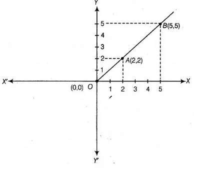 (iii) Plotting the points 0 (0, 0), A (2,2)and 6 (5, 5)on the graph paper and join these points, we get a straight line. Hence, given points are collinear.
